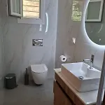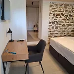 O Trikeri Inn oferece pátio e varanda, bem como confortos como controle de temperatura. Este apartamento inclui casa de banho separada e chuveiro para seu conforto. Secador de cabelo, lençóis de banho e toalhas também podem ser encontrados.